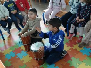 Les élèves participent à un atelier musical le mardi après-midi avec Azziddine notre intervenant musique. Ils découvrent des instruments de percussion, apprennent à suivre un tempo et à reproduire une mélodie. Ils sont également initiés au solfège car ils apprennent à chanter les notes, leur nom et leur valeur de temps. Bravo les petits musiciens!