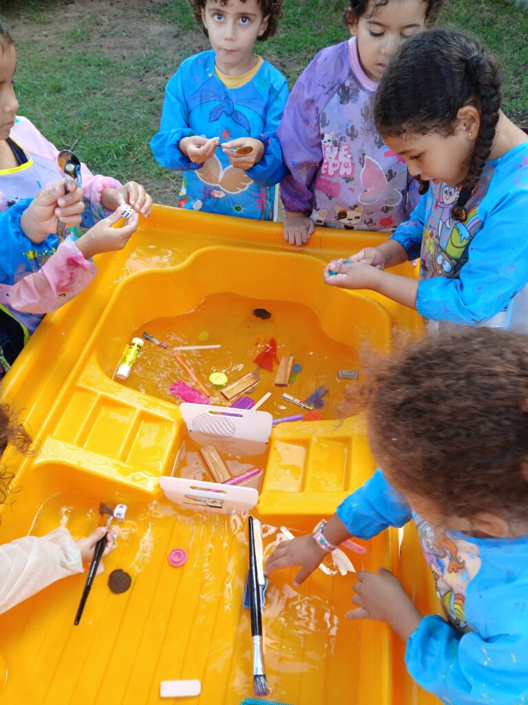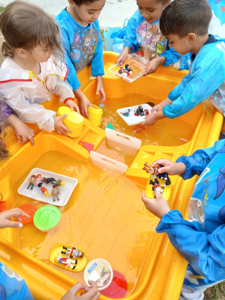 Une nouvelle séance à la découverte de l’élément eau pour nos petits scientifiques! Les enfants ont mis des objets de la classe dans le bac à eau et ont observé. Certains objets sont allés « en bas », au fond de l’eau…