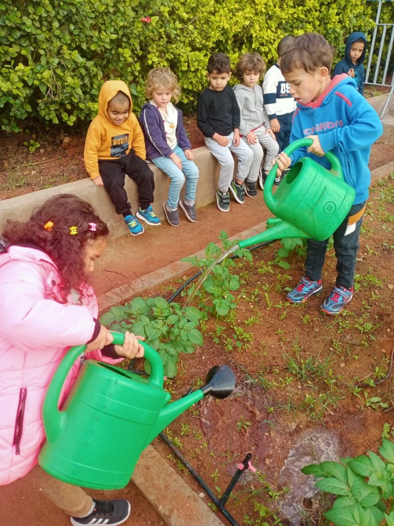Les élèves de PS/MS ont bien investi le jardin pédagogique. Après avoir préparé la terre, ils ont planté leurs pommes de terre. Après trois semaines, les plants ont déjà bien grandi. Bravo les jardiniers en herbe !