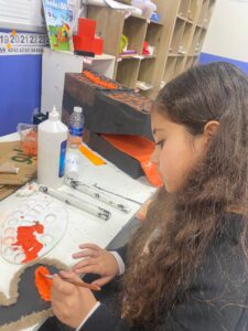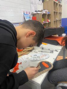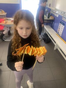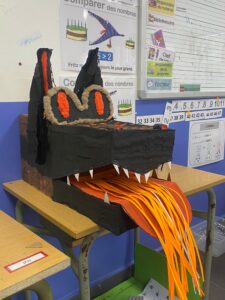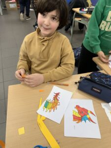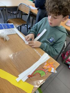 l’aide de baguettes et réalisé de jolis masques colorés . Ensemble, la classe a également participé à la création d’un grand dragon collectif.
