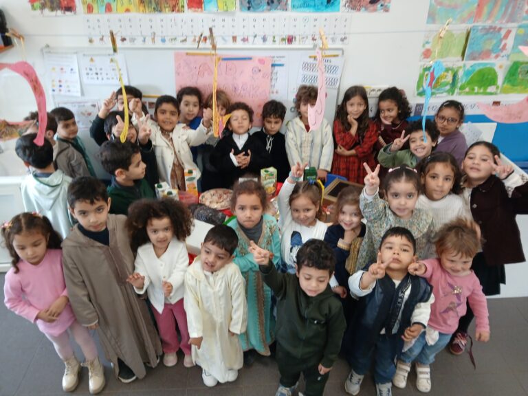 Les élèves de maternelle se sont reunis le temps d’un goûter à l’occasion de la fête de l’Aïd. Un joli moment festif en musique et en tenues traditionnelles. Merci aux parents pour leurs contributions.