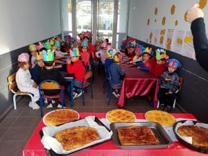 Mercredi 31 janvier 2024, les élèves de maternelle ont organisé une fête de la galette. Dans un premier temps, chaque classe a proposé une petite représentation de danse préparée en classe. Dans un second temps, lors du banquet des rois et des reines, les élèves, parés de magnifiques couronnes, ont pu déguster les galettes qu’ils avaient eux-mêmes réalisées. Bravo pour votre travail les enfants !