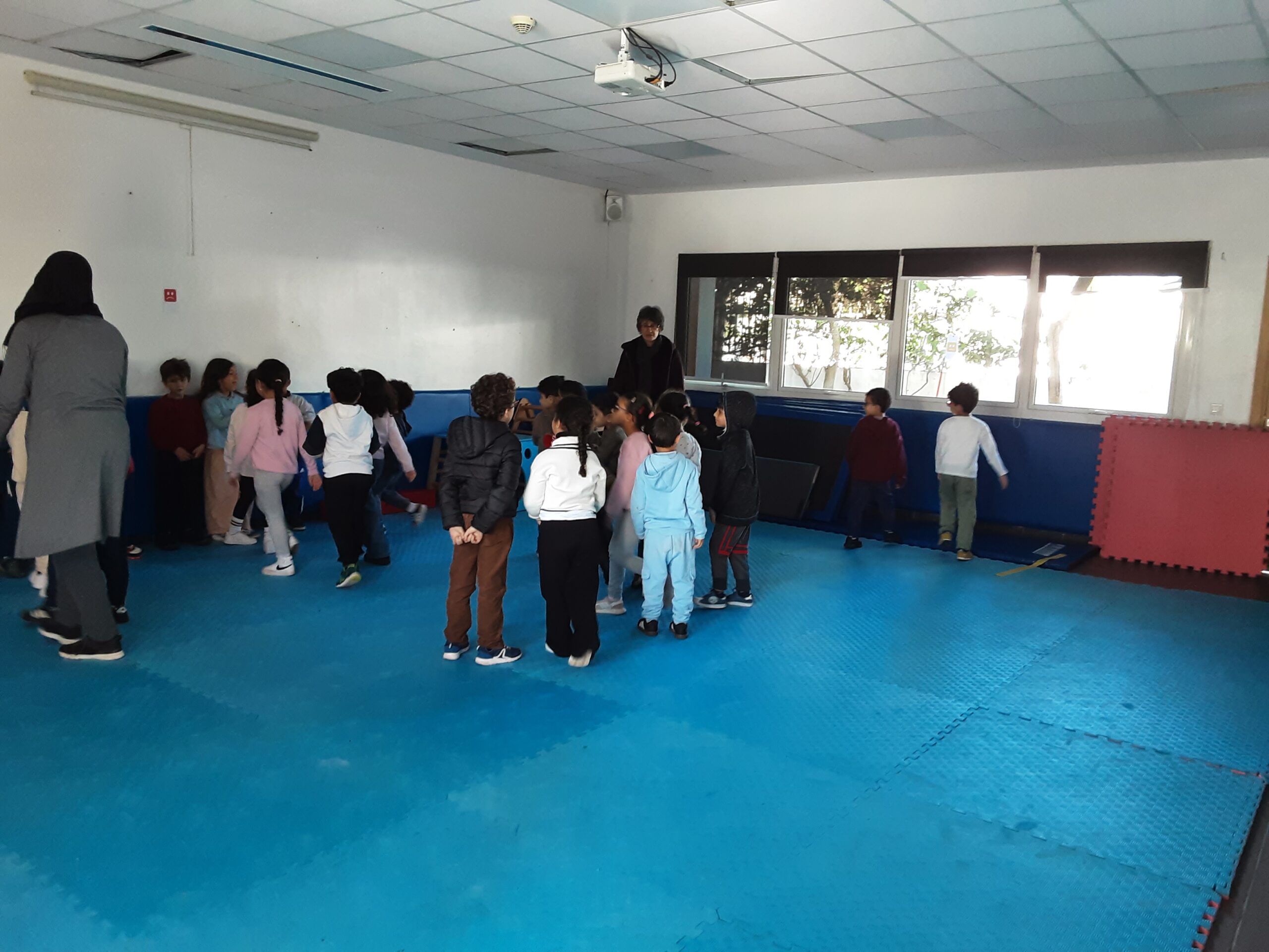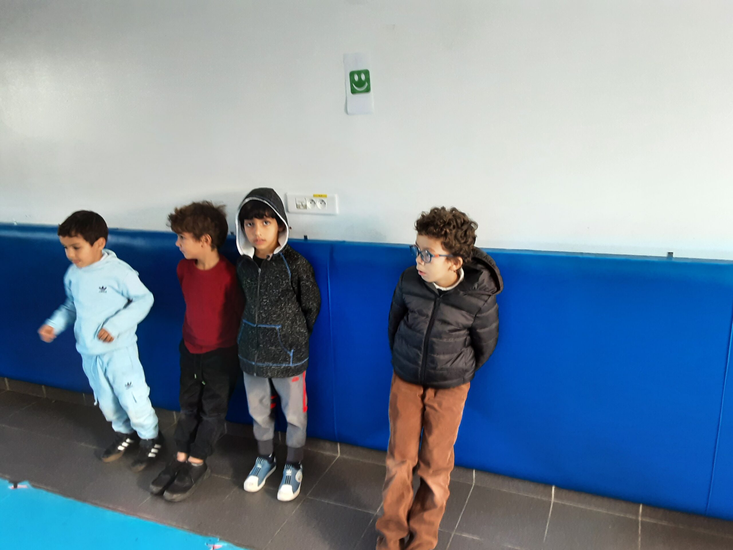 Nous sommes allés en salle de motricité. Sur 3 murs différents était collé une vignette différente représentant un visage heureux, satisfait, content / un visage triste, fâché / un visage neutre. En début d’activité, la maitresse nous a regroupés autour d’elle. Puis elle a énoncé une phrase. Nous devions alors nous orienter chacun vers le petit dessin qui représentait le mieux l’émotion qui nous traversait à l’écoute de cette phrase. La question était : Si tu entends cette phrase, que ressens-tu ?