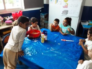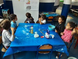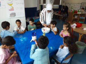 Afin de fêter les anniversaires du mois de septembre, nous avons commencé par cuisiner 3 beaux gâteaux au yaourt. Merci pour les enfants qui nous ont apporté les ingrédients ! Tout s’est très bien passé. Nous sommes de bons pâtissiers !