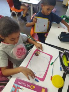 Depuis la rentrée, les élèves de CP s’approprient les mathématiques grâce au travail de groupe et à la manipulation.  Ils apprennent et renforcent leurs connaissances de manière ludique et motivante. La preuve en images!
